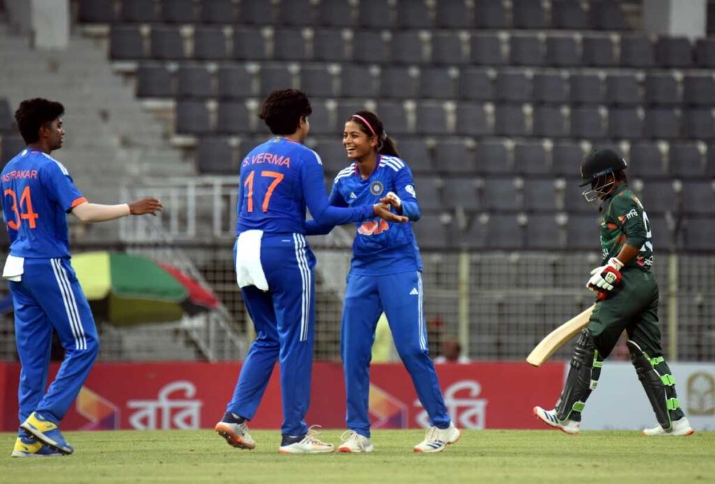 कप्तान हरमनप्रीत कौर ने टॉस जीतकर पहले फील्डिंग का फैसला किया, जिसे गेंदबाजों ने सफलतापूर्वक साबित किया। बांग्लादेश के लिए सलामी बल्लेबाज दिलारा अख्तर ने 25 गेंदों पर 39 रन और कप्तान निगार सुल्ताना ने 28 रनों की पारी खेली, लेकिन टीम 20 ओवर में आठ विकेट पर 117 रन ही बना सकी। भारत के लिए राधा यादव ने 22 रन देकर दो विकेट लिए, जबकि रेणुका सिंह, पूजा वस्त्राकर और श्रेयांका पाटिल ने एक-एक विकेट लिए। भारत ने जवाब में 18.3 ओवर में तीन विकेट पर 121 रन बनाकर मैच जीत लिया।