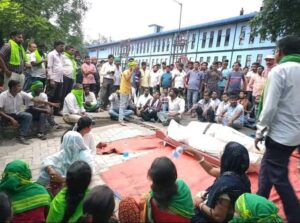 गम्हरिया स्थित एक प्राइवेट कम्पनी KROSS LIMITED में 2 दिन पहले कार्य के दौरान दो कर्मचारी का मौत गई थी । पोस्टमार्टम के बाद पीड़ित परिवार के साथ मिल के उचित मुआवजा के लिए कम्पनी का गेट जाम किया गया ।