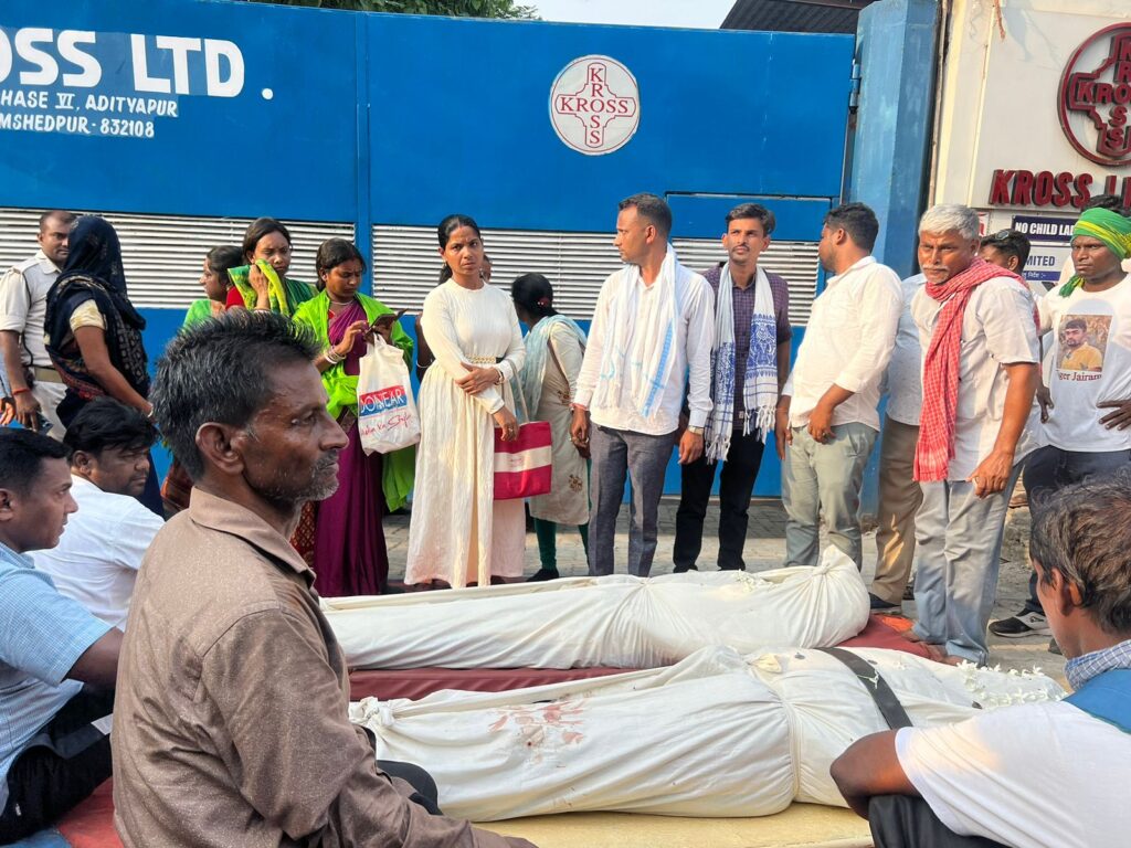 गम्हरिया स्थित एक प्राइवेट कम्पनी KROSS LIMITED में 2 दिन पहले कार्य के दौरान दो कर्मचारी का मौत गई थी । पोस्टमार्टम के बाद पीड़ित परिवार के साथ मिल के उचित मुआवजा के लिए कम्पनी का गेट जाम किया गया ।